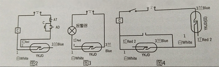 1、圖2是在油箱上應用的情況,當液面低于要求位置時,液位控制繼電器YKJD動作:1與2斷開,中間繼電器C線圈斷電,油泵電機停止工作。